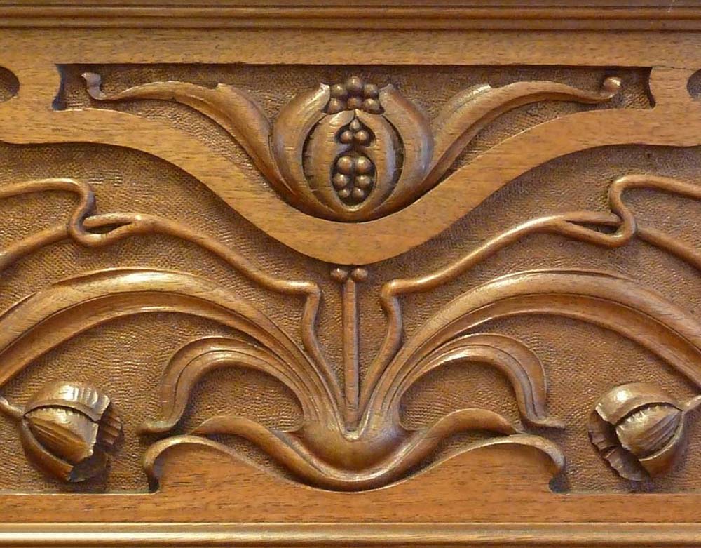 Ausgewogen im Klang über alle Lagen. Rund und satt im Bass, kräftig und singend im Diskant. Das Klavier ist Nußbaum furniert mit Massiv-Anleimern, Kassetten mit Wurzelnußbaum Einlagen und Jugendstilschnitzereien im Oberrahmen und an den Nasen. Innen ist das Klavier von uns generalüberholt mit neuen Saiten, Wirbeln, neuen Hammerköpfen usw.
